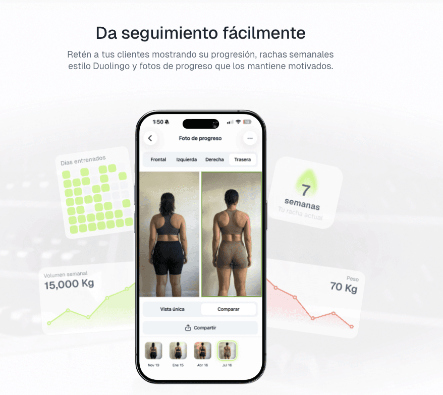 La diferencia de percepción es enorme. Un cliente que recibe su rutina en una app con tu marca y videos de cada ejercicio siente que trabaja con un profesional de alto nivel. Uno que recibe un texto por WhatsApp siente que le están haciendo un favor.