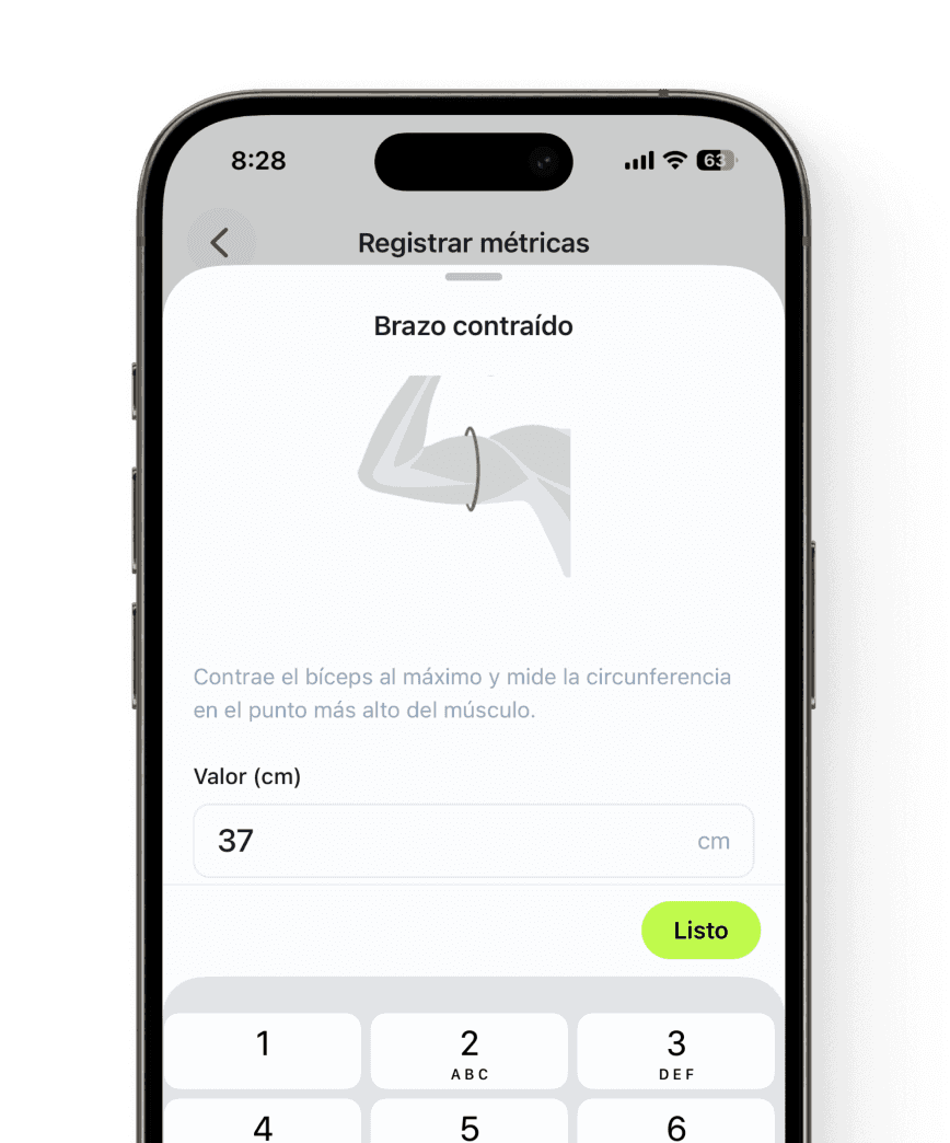Lleva el control completo de las medidas de tus clientes: peso, composición corporal y pliegues cutáneos, con reportes automáticos.