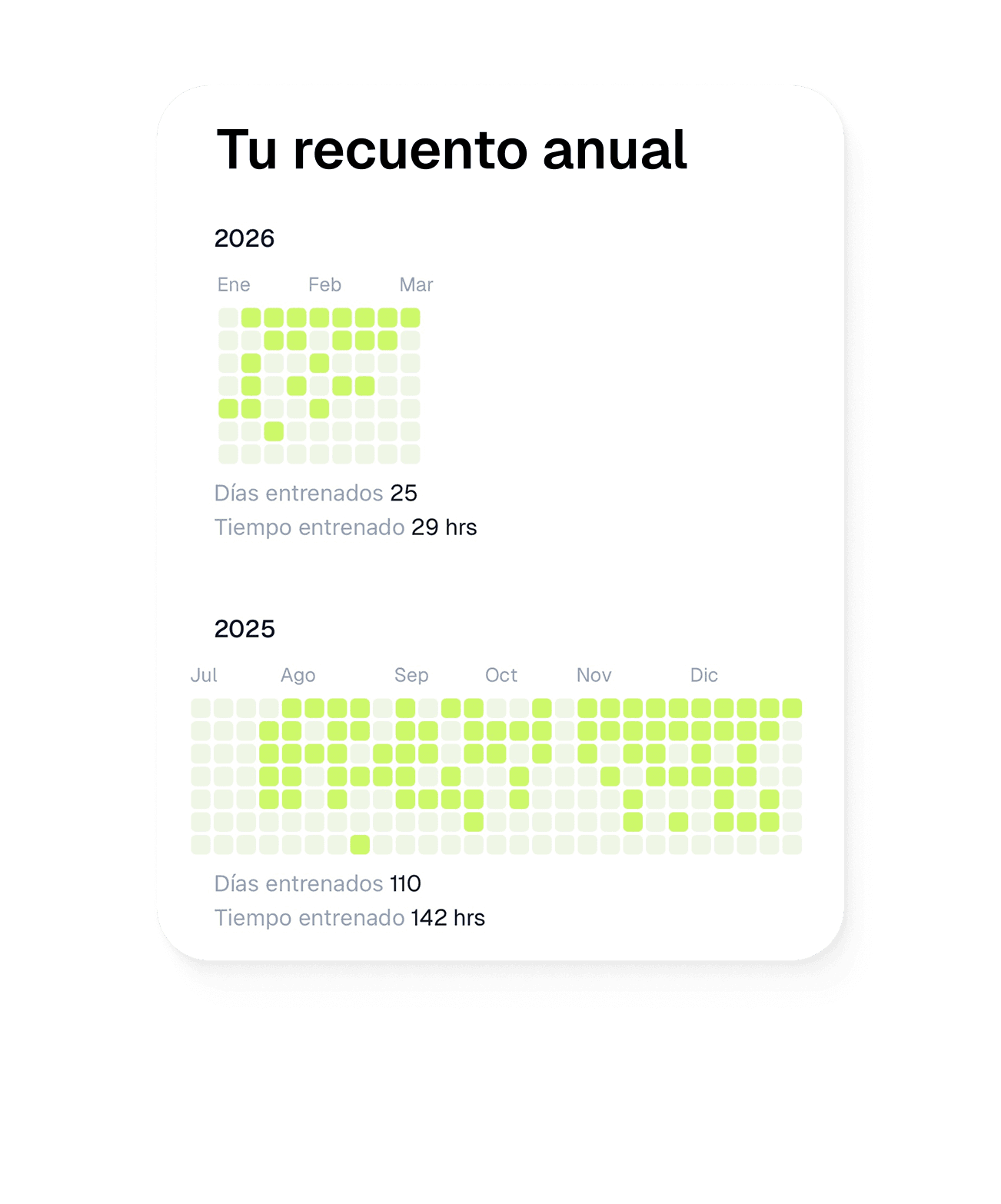 Los hábitos se forman a diario. Tus clientes verán un calendario anual con los días que entrenan.