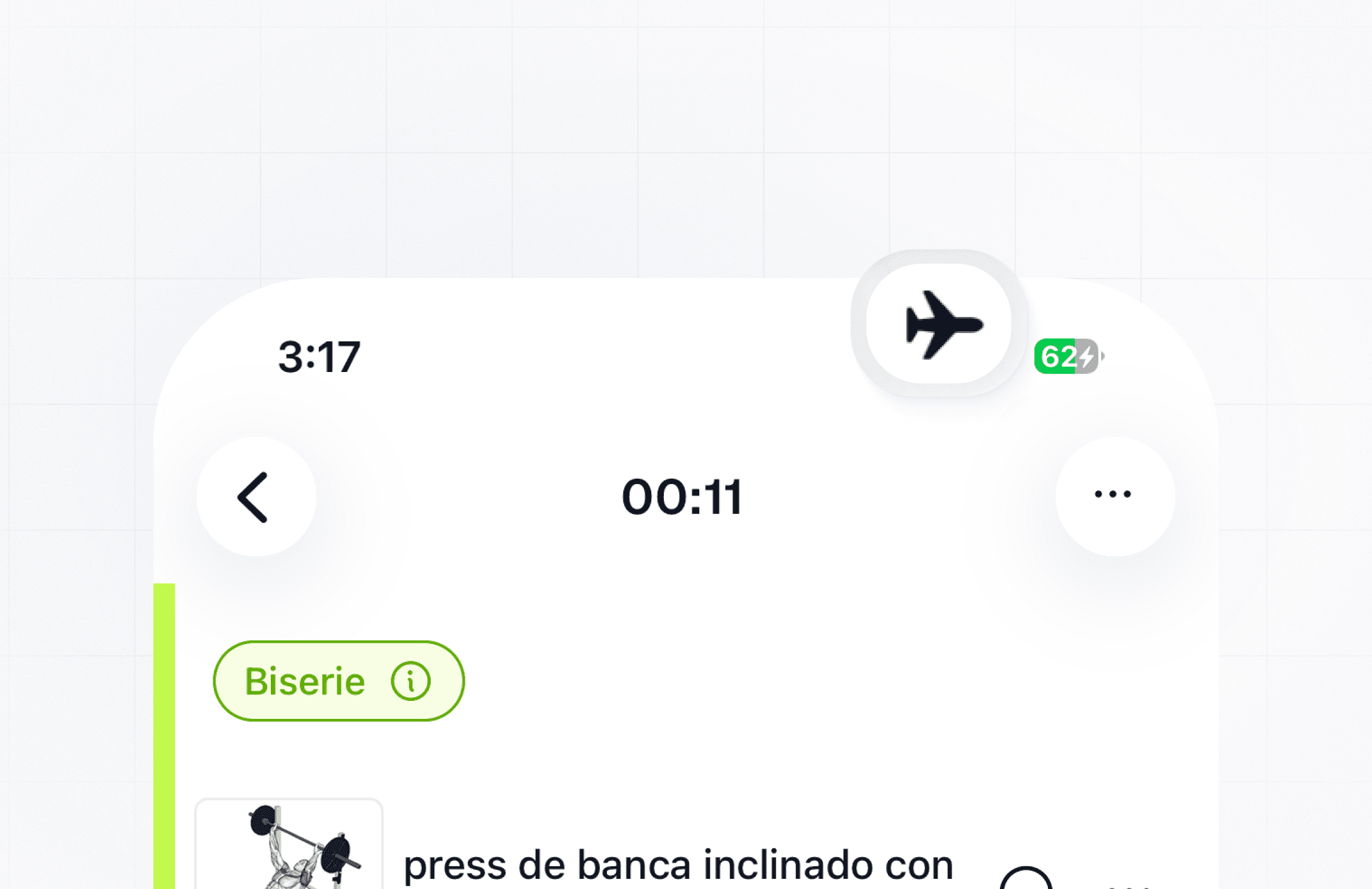 Tus clientes acceden a sus rutinas y entrenan incluso sin conexión. La app descarga automáticamente los datos necesarios. Ideal para gimnasios con mala cobertura.